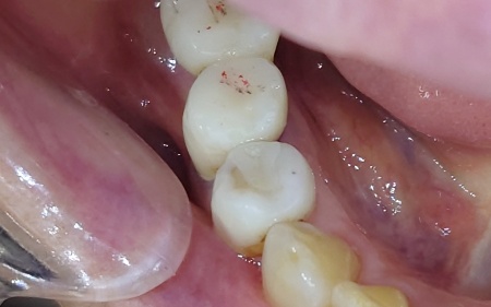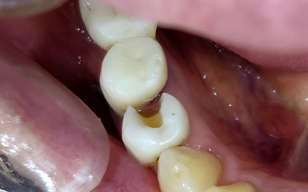 「右下奥歯の被せ物が欠けてしまったので診てほしい」とご相談いただきました。 |